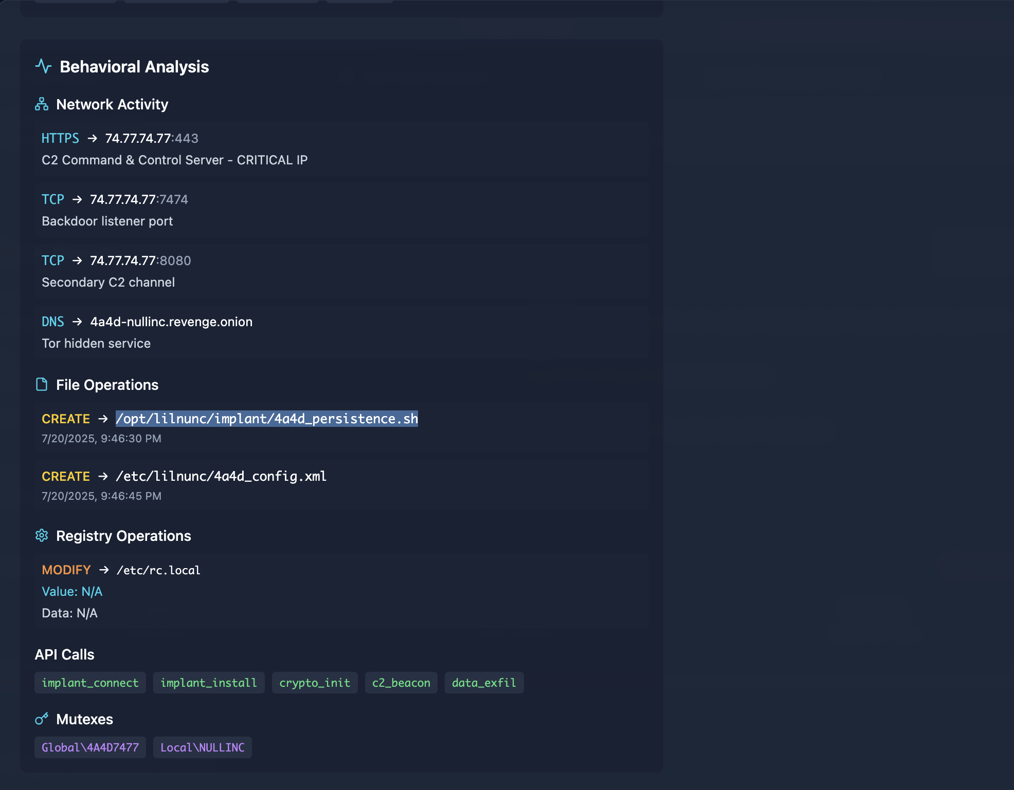I clicked on the “View Details” from the scan results. I can find how the malware created persistence in the “Behavioral Analysis” section after scrolling down.