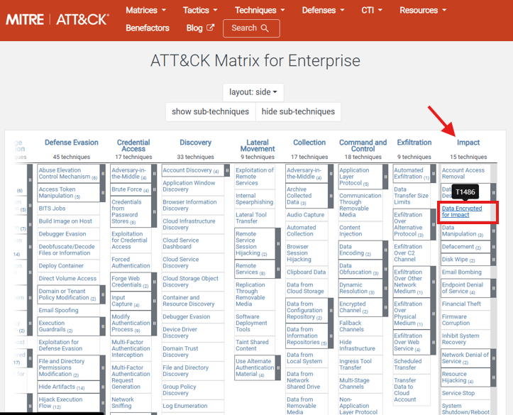 What is the MITRE ATT&CK technique that best describes the impact? (Txxxx) Hint: Navigate to the MITRE ATT&CK website and examine the techniques in the Impact column of the ATT&CK Matrix for Enterprise table.